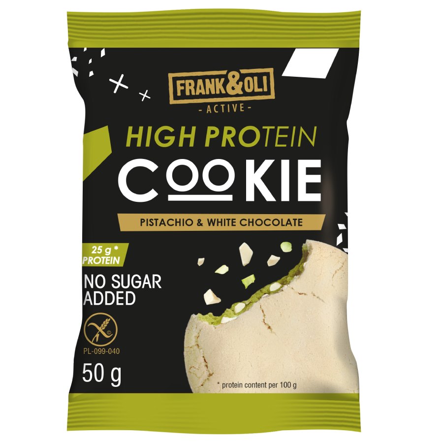 Ciastko proteinowe z pistacjami i białą czekoladą Frank&Oli, 50g