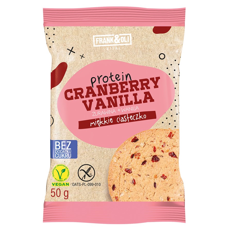 Ciastko proteinowe żurawina i wanilia Frank&Oli, 50g