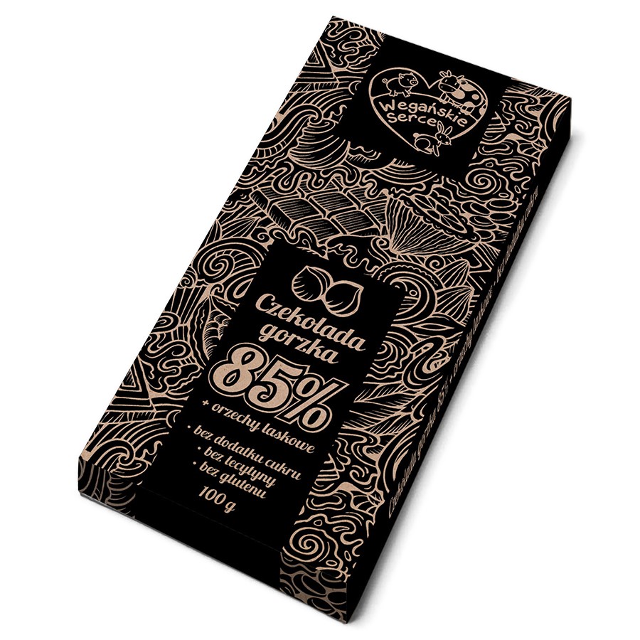 Wegańska czekolada gorzka 85%, bez dodatku cukru Wegańskie Serce, 100g